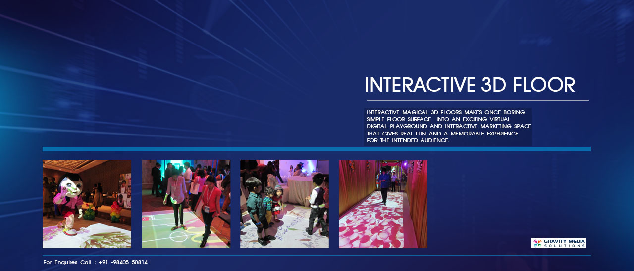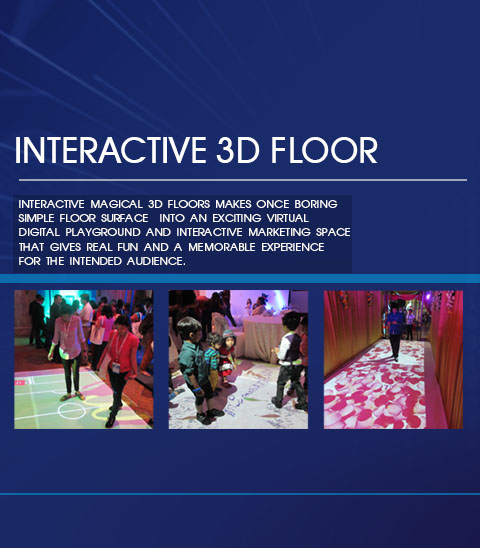 Interactive Magical 3D Floors makes once boring simple floor surface into an exciting virtual digital lay-ground, creating a brand new mediumto captivate and fascinate audiences.