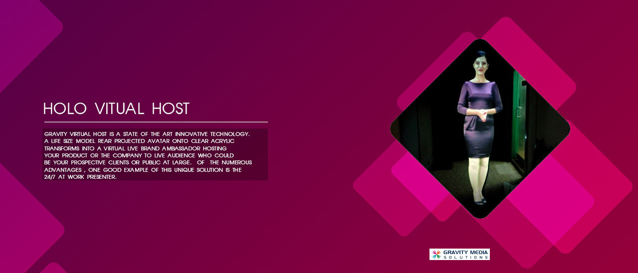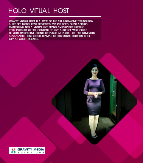 A state of the art innovative technology. A life size model rear projected avatar onto clear acrylic transforms into a virtual live brand ambassador hosting your product or the company